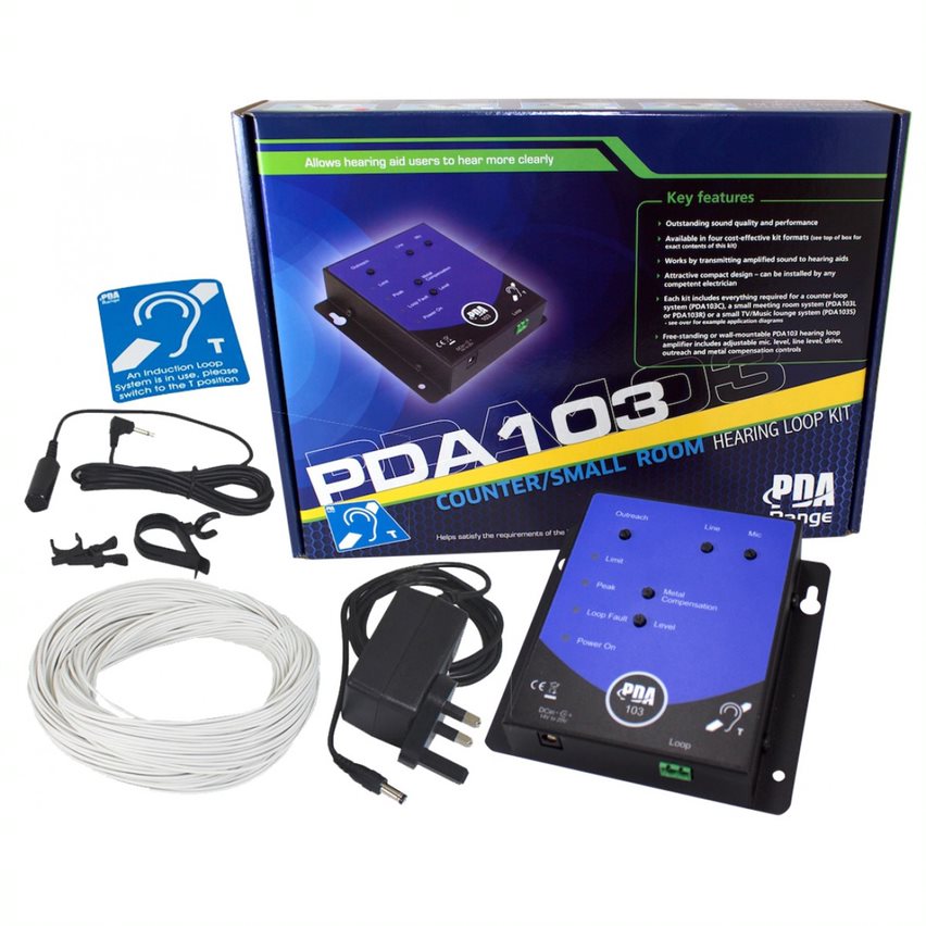- Tudo o que precisa para criar um sistema escuta em loop de alta qualidade para uma sala de até 50m2 (7m x 7m).- Ideal para pequenas salas de reuniões, câmaras municipais, salas de operação, etc.- O amplificador PDA103 inclui uma entrada de microfone de 3,5 mm (para conectar o microfone de secretária fornecido), uma entrada de nível de linha e uma tomada de 'extensão'.- O controle de compensação de metal ajuda a melhorar a inteligibilidade em salas com alto conteúdo de metálico.- Microfone ajustável.- O controlo da unidade (nível) permite que o estágio de saída do amplificador seja configurado para se